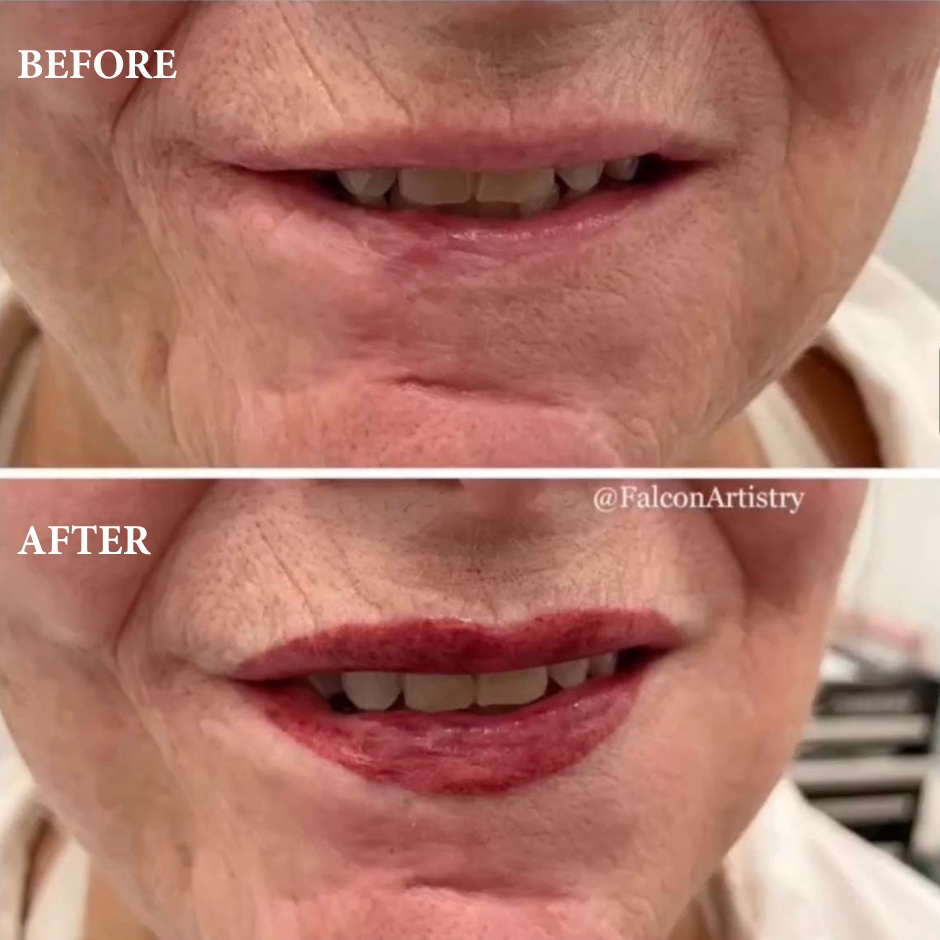 A full lip enhancement with liner, contour, and custom color fill for a defined yet natural finish