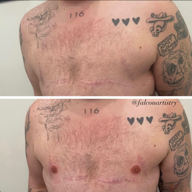 – After chest/top surgery for trans men and women whether you’ve opted for nipple grafts or want to enlarge the shape/alter the pigmentation of your natural nipples.