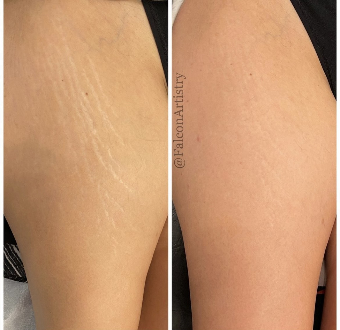 Other than a tummy tuck, or the literal removal of skin, there is no proven way to remove stretch marks. The Stretch Mark Camouflage Tattoo only helps to conceal and diminish the appearance of stretch marks so that they are less perceptible to the naked eye. Think of it as having a filter, taking away the white contrast of your scars.